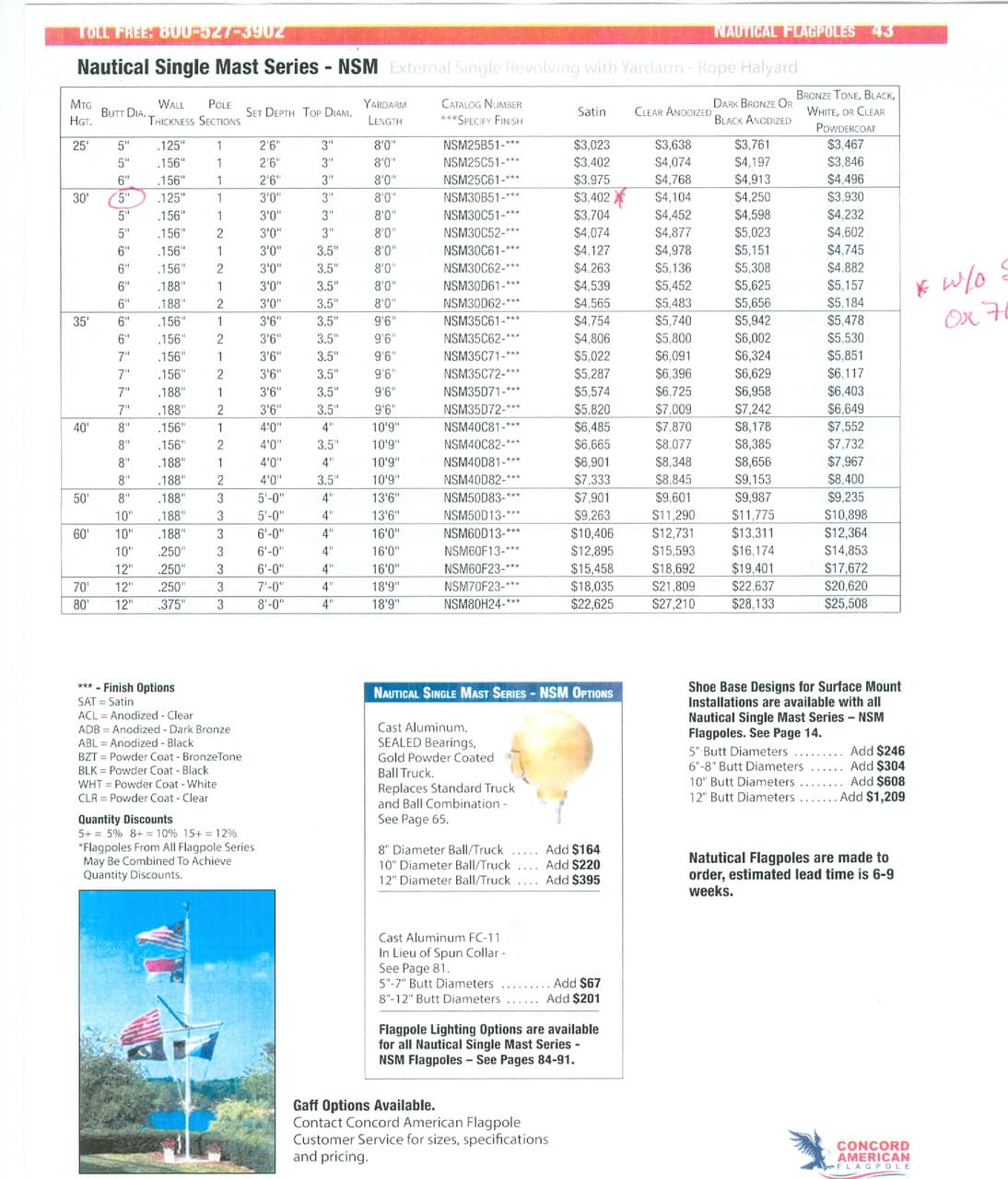 30' FOOT CONCORD AMERICAN TAPERED ALUMINUM NAUTICAL FLAGPOLE|BOBS FLAGPOLE COMPANY