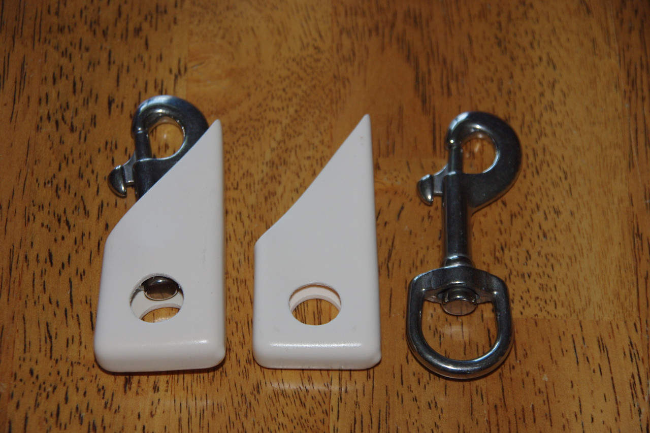 These flag clips sets consist of 2 - 3 1/2 inch chrome plated bronze flagclips and 2 - 4" Neopreme covers. Long lasting and attractive. Stops most of the noise. Works with almost any external halyard (rope) and pulley system