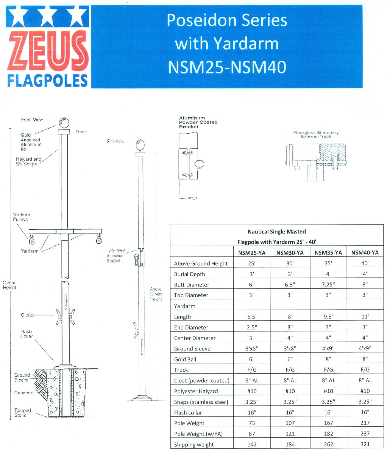 25' Zeus Nautical Poseidon High Wind Quality Fiberglass Nautical Flagpole